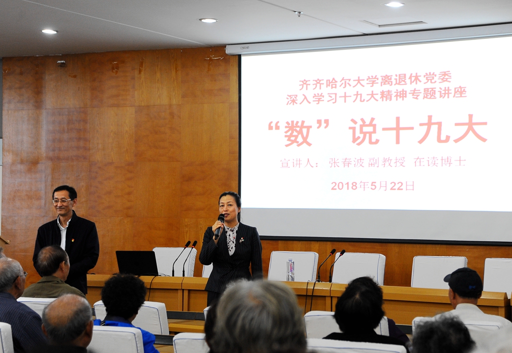 會上,校黨的十九大精神宣講團成員、馬克思主義學院中國近現代史綱要教研部主任、碩士生導師張春波副教授以《“數”說黨的十九大》為題,從新時代、新矛盾——進行偉大斗爭,新理論、新思想——建設偉大工程,新任務、新舉措——推進偉大事業,新使命、新征程——實現偉大夢想等四個方面闡釋了黨的十九大的“新”。他指出,只有進行新的偉大斗爭才能開創新時代,解決新矛盾,只有以馬克思主義中國化最新成果——習近平新時代中國特色社會主義思想為行動指南,才能建設新的偉大工程。