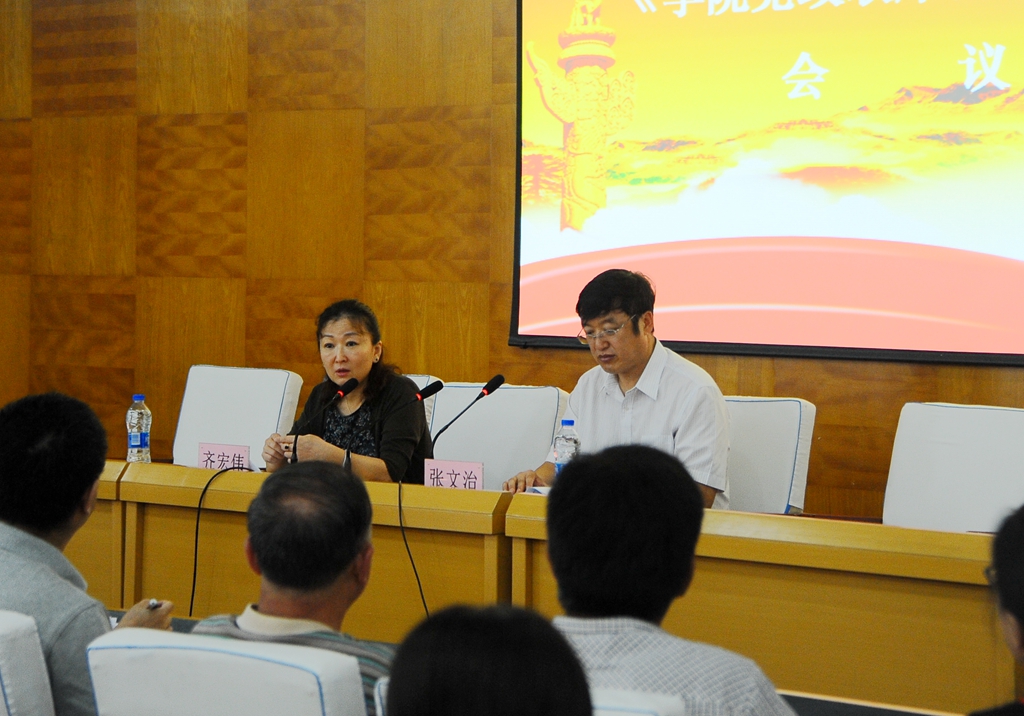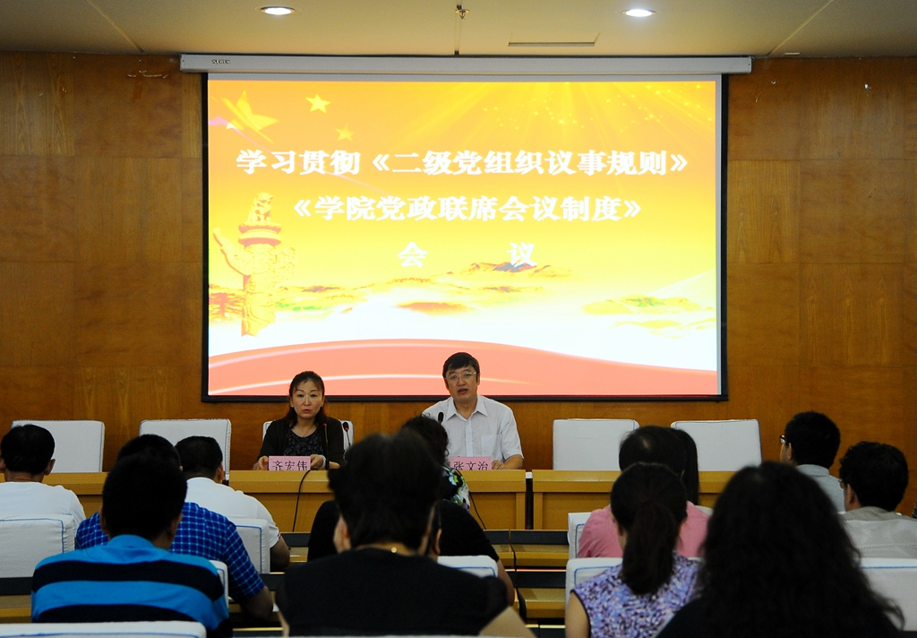 會前,張文治為各學院黨政負責人,研究生部、離退休工作處、后勤管理處、圖書館、公共外語教研部、網絡信息中心、資產運營管理中心黨政負責人和機關黨委書記解讀了《中共齊齊哈爾大學委員會二級黨組織議事規則(試行)》《齊齊哈爾大學學院黨政聯席會議制度(試行)》兩個文件的精神和主要內容。