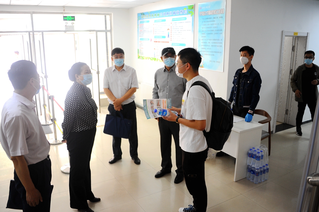 在檢查指導過程中,陳桂芝對各單位堅守在崗位的工作人員表示慰問和感謝,并強調,各部門各學院要從嚴從細落實學生返校各項工作要求和各項防控措施,加強學生返校過程各個環節的管理和返校后的全流程閉環精細化管理,扎實做好防控細節,筑牢校園安全防線,確保學生返校報到工作安全有序,確保每一名返校同學的生命安全和身體健康。