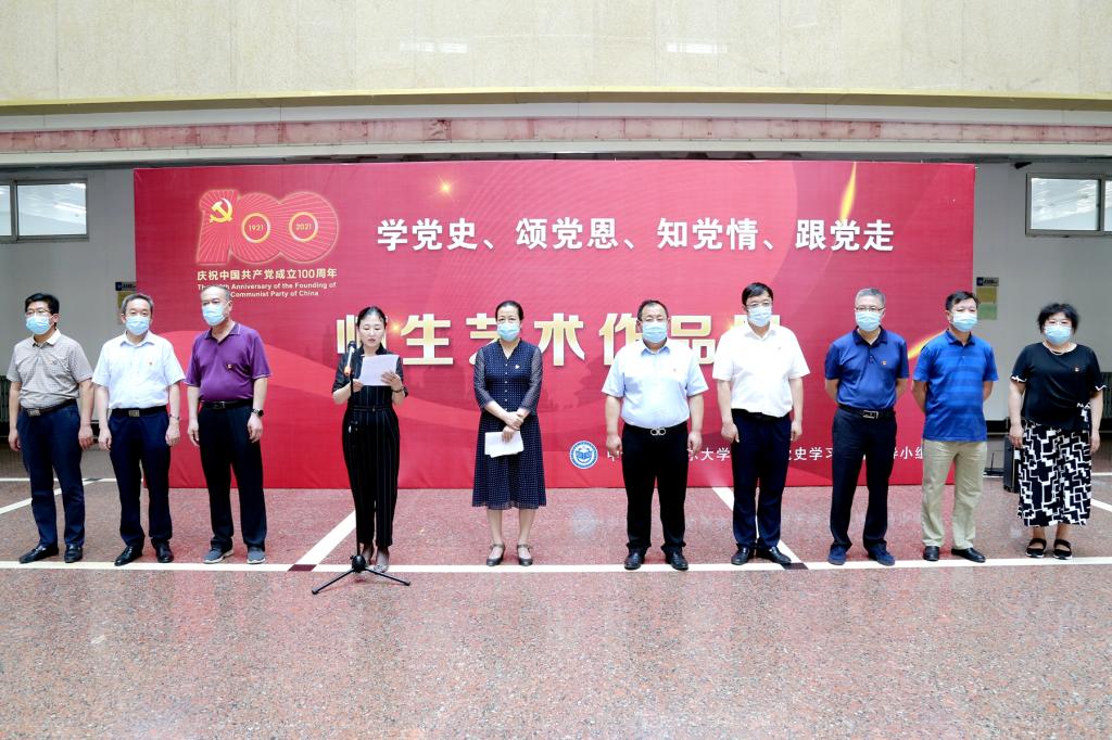 校黨委書記陳桂芝在開幕式上致辭,她代表學校黨委、代表學校黨史學習教育領導小組對展覽開幕表示熱烈地祝賀!向辛勤籌備展覽、精心創作的師生表示誠摯地慰問!