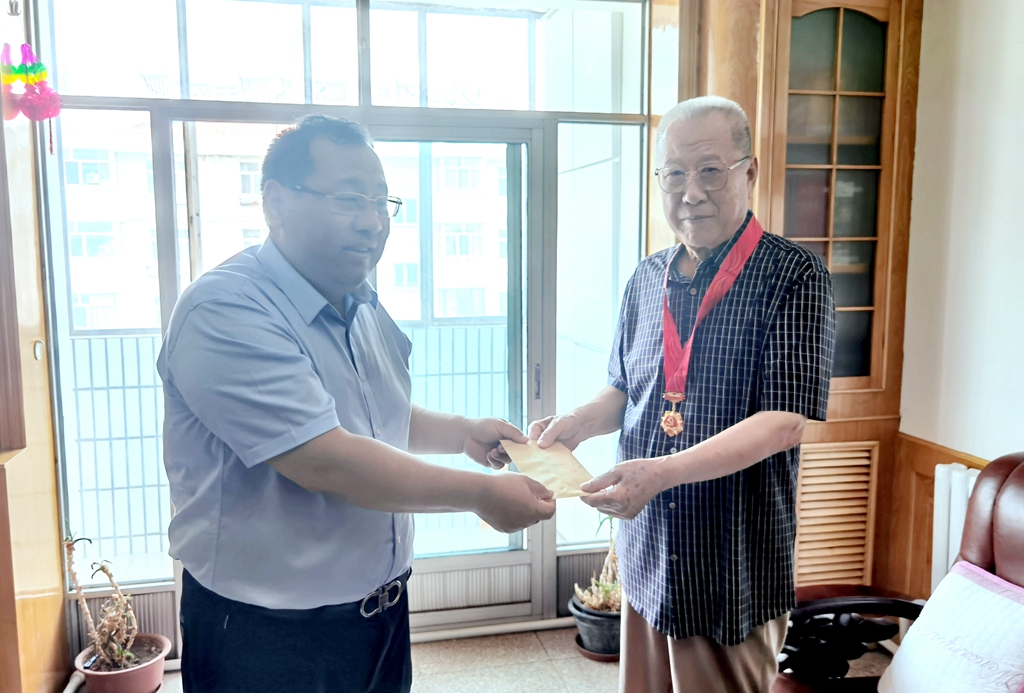 “七一”慰問活動期間,校領導齊宏偉、張文治、王剛、姜國慶、張樹軍、呂厚均、陶佰睿,分別走訪慰問了建國前老黨員、市級以上獲獎黨員以及困難黨員。每到一處,校領導都與黨員們親切交談,詳細了解他們在工作和生活等方面的情況,詢問他們的困難和需求,并誠懇地征求黨員對學校改革發展的意見建議,鼓勵生活困難黨員堅定信心,積極面對生活,并為老黨員佩戴“光榮在黨50年”紀念章、送上慰問金,表達學校黨委對他們的關懷和溫暖。