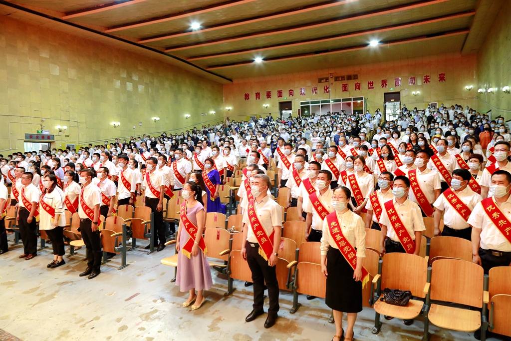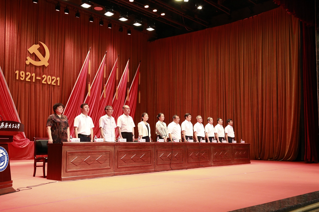 6月30日下午,齊齊哈爾大學慶祝中國共產黨成立100周年暨“兩優一先”表彰大會在文化宮隆重召開。校領導陳桂芝、董玉庭、齊宏偉、張文治、王剛、姜國慶、張樹軍、呂厚均、李奇楠、陶佰睿出席大會,全校副處級以上干部、“兩優一先”獲得者及黨史知識競賽獲獎集體代表、黨支部書記、離退休干部、民主黨派負責人及黨員代表參加大會。會議由校長、黨委副書記董玉庭主持。