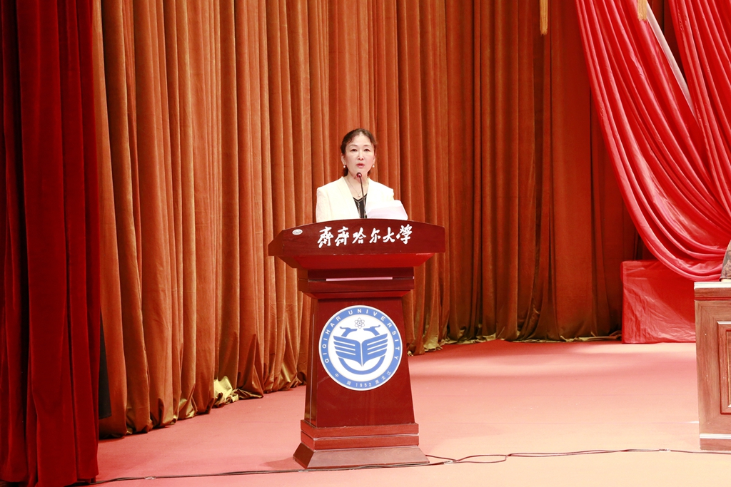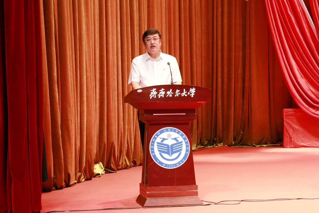陳桂芝強調,我們要堅持以習近平新時代中國特色社會主義思想為指導,深入貫徹落實習近平總書記重要講話重要指示精神,從黨的百年奮斗歷史中汲取奮進力量,把黨的歷史學習好、總結好,把黨的寶貴經驗傳承好、發揚好,堅持初心和使命這個根本動力,學思踐悟習近平新時代中國特色社會主義思想;堅持全心全意為人民服務這個根本宗旨,努力辦好人民滿意大學;堅持社會主義辦學這個根本方向,全面深化教育教學改革;堅持立德樹人這個根本任務,全面落實“質量立校、人才強校、特色興校、文化鑄?!睉鹇裕粓猿贮h的領導這個根本保證,全面加強學校治理體系和治理能力現代化建設,光大“養正毓德、精存自生”的校訓精神,弘揚“大愛大道大學”的優良校風,彰顯“為人為學為師”的淳厚教風,堅守“四個相統一”,當好“四個引路人”,爭做“四有好老師”,培養擔當民族復興大任的時代新人,充分履行大學職能,在黑龍江全面振興全方位振興的偉大實踐中體現齊大的新擔當新氣象新作為。要以建黨百年為新起點,以史明志、知史愛黨,在開展黨史學習教育中鑄牢新思想。要以建黨百年為新起點,不忘初心、牢記使命,在構建龍江高質量教育體系中開拓新路徑。要以建黨百年為新起點,強基固本、正風肅紀,在推進全面從嚴治黨中開創新局面。要以建黨百年為新起點,擔責作為、愛校如家,在辦好人民滿意大學中體現新擔當。