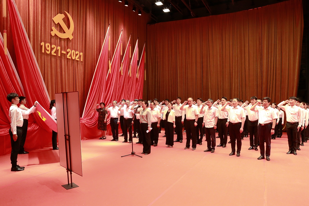 在陳桂芝的領誓下,新黨員進行了入黨宣誓、老黨員重溫了入黨誓詞。