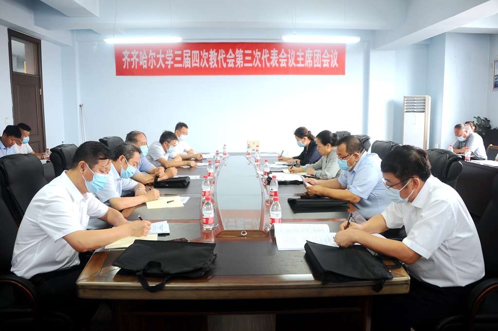 根據大會議程安排,齊齊哈爾大學第三屆教職工代表大會第四次會議第三次代表會議主席團會議在學校辦公樓519會議室召開,全體主席團成員參加了會議,會議由校黨委書記、大會主席團主席陳桂芝主持。
