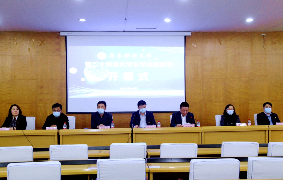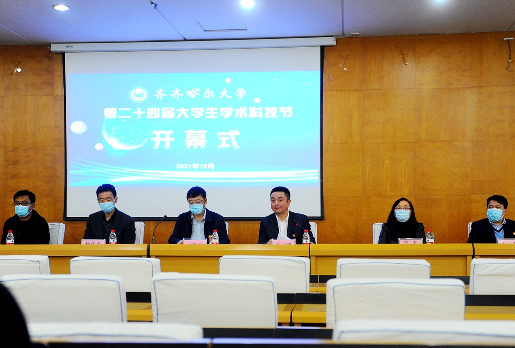 發布日期:2021-11-03 點擊量:10月29日下午,以“科創青春 強國有我”為主題的齊齊哈爾大學第二十四屆大學生學術科技節開幕式在西主學術報告廳舉行。校黨委副書記、本屆科技節組委會主任張文治,各有關部門負責人出席開幕式,各學院(研究生部)教師和學生代表在線上觀看了開幕式直播。開幕式由校團委副書記計紅主持。