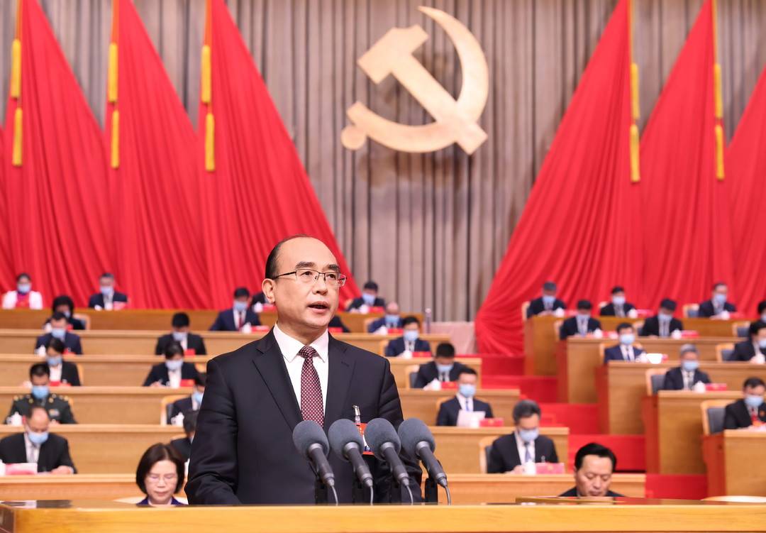 許勤代表中國(guó)共產(chǎn)黨黑龍江省第十二屆委員會(huì)向大會(huì)作報(bào)告