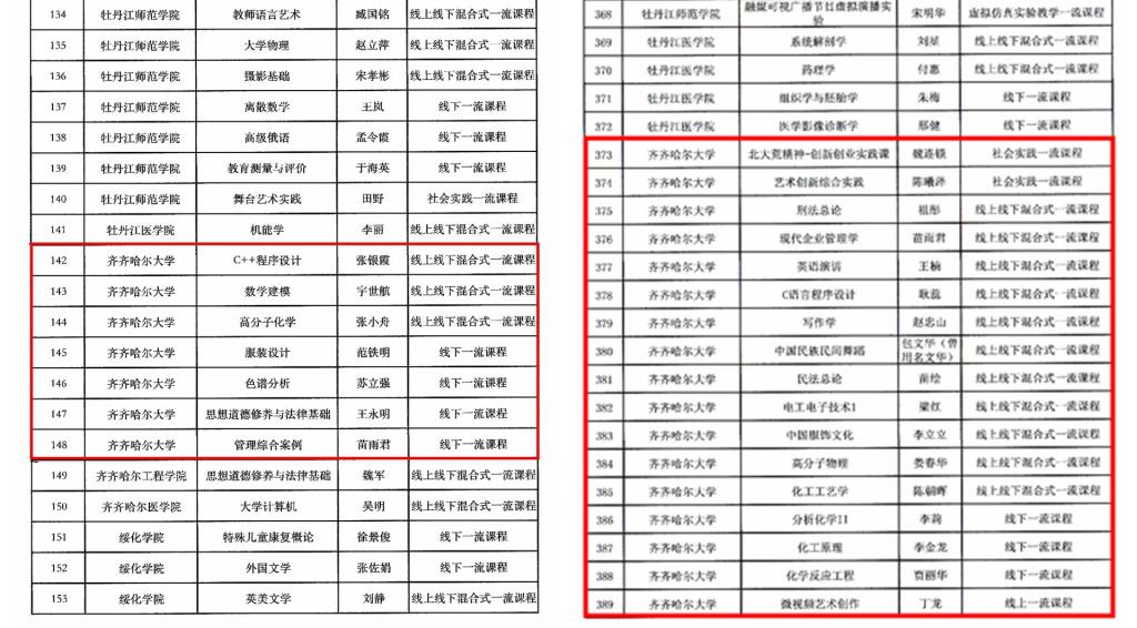 日前,黑龍江省教育廳發布了《關于公布省級一流本科課程認定結果的通知》,齊齊哈爾大學兩批共24門課程被認定為黑龍江省一流本科課程,首批7門課程,第二批17門課程,在24門省一流本科課程中包括線上線下混合式課程13門,線下課程8門,社會實踐課程2門,線上課程1門。