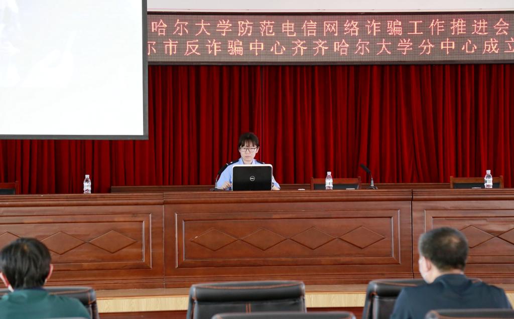 為貫徹落實(shí)習(xí)近平總書(shū)記關(guān)于打擊治理電信網(wǎng)絡(luò)詐騙犯罪工作的重要指示精神,推進(jìn)平安校園建設(shè),6月15日下午,學(xué)校在求實(shí)樓五樓會(huì)議室舉行了防范電信網(wǎng)絡(luò)詐騙工作推進(jìn)會(huì)暨齊齊哈爾市反詐騙中心齊齊哈爾大學(xué)分中心成立儀式。