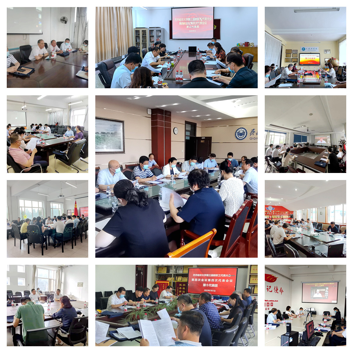 7月1日上午,齊齊哈爾大學第三屆教職工代表大會第四次會議第四次代表會議以線上線下相結合的方式召開,主會場設在求實樓五樓會議室。