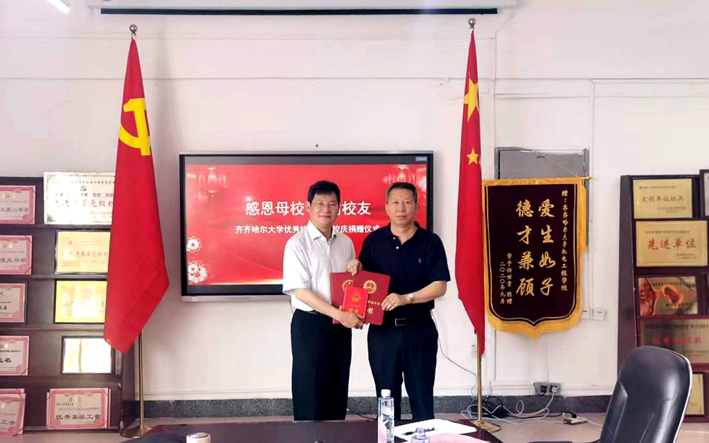 7月8日,“感恩母校 感謝校友”齊齊哈爾大學優秀校友曲波校慶捐贈儀式在機電工程學院會議室舉行。我校優秀校友曲波,海普瑞思精密超精密制造公司董事長劉紅兵,我校副校長、黨委常委叢喜權出席儀式,學校辦公室、科研處和機電工程學院相關工作人員參加了捐贈儀式。機電工程學院黨委書記王云鵬主持儀式。