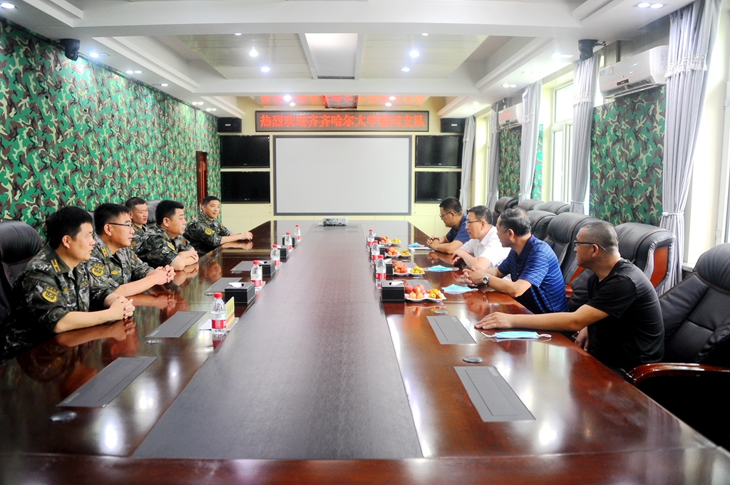 在武警齊齊哈爾市支隊,陶佰睿代表學校向武警部隊廣大官兵致以節日的問候。武警齊齊哈爾市支隊領導對陶佰睿一行的來訪和我校多年來為武警支隊建設提供的支持深表感謝,并表示,部隊將一如既往地支持齊齊哈爾大學做好大學生軍訓、國防教育、國家安全教育等工作,通過軍事訓練助推學生進一步塑形、塑魂、塑心,希望雙方今后在各領域進一步加強合作,共享資源,互利共贏,不斷譜寫軍民魚水情時代新篇。