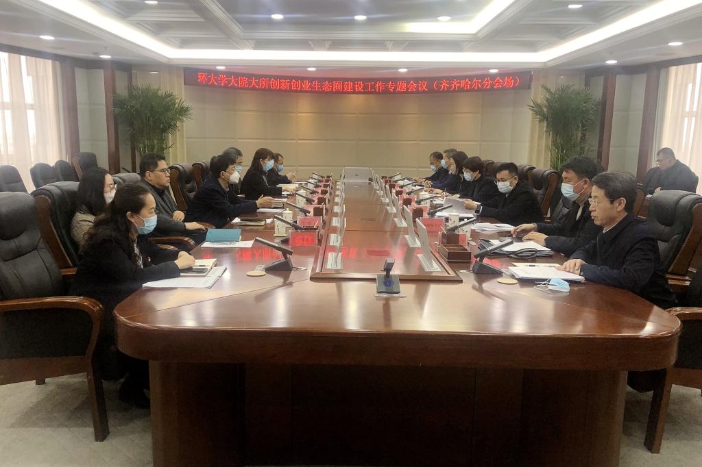 3月7日,環(huán)大學(xué)大院大所創(chuàng)新創(chuàng)業(yè)生態(tài)圈建設(shè)工作專題會議以視頻會議形式召開,黑龍江省副省長王嵐,省政府副秘書長李明春,省發(fā)改委、科技廳、教育廳等省直有關(guān)單位,屬地政府,相關(guān)高校院所主要領(lǐng)導(dǎo)參會,會議由李明春主持。我校校長董玉庭、副校長叢喜權(quán)、科研處處長荊濤于齊齊哈爾分會場參會,董玉庭就環(huán)齊齊哈爾大學(xué)創(chuàng)新創(chuàng)業(yè)生態(tài)圈建設(shè)方案作專題匯報。