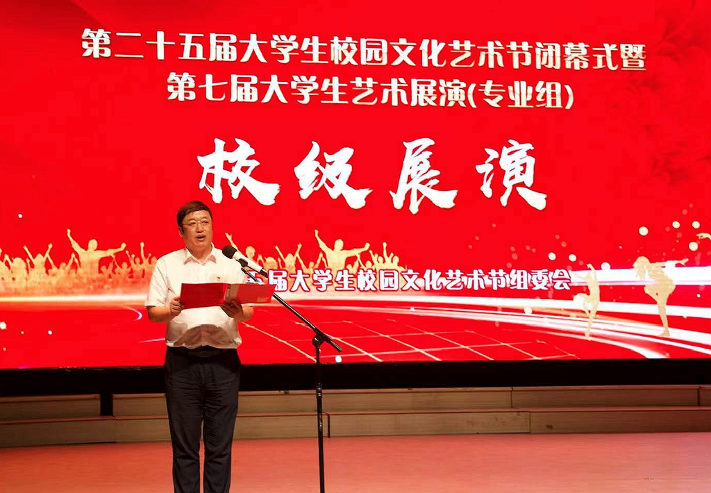 6月16日晚,我校第二十五屆大學生校園文化藝術節閉幕式暨第七屆大學生藝術展演(專業組)校級展演在文化宮隆重舉行。校黨委副書記張文治出席閉幕式,黨委宣傳部、學生工作部(學生處)、招生就業處、校團委、音樂與舞蹈學院等相關部門、單位負責人以及部分師生代表參加閉幕式。