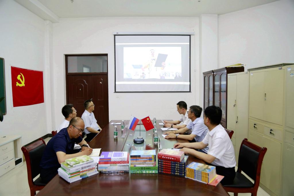 為推動(dòng)中俄高校教育交流與合作,在俄羅斯哈巴羅夫斯克市國(guó)際關(guān)系局和齊齊哈爾市人民政府外事辦公室的積極協(xié)調(diào)下,6月20日下午,我校在德潤(rùn)大廈國(guó)際交流合作處會(huì)議室與俄羅斯遠(yuǎn)東國(guó)立交通大學(xué)共同舉辦“攜手進(jìn)步階梯 共享文化成果”線上互贈(zèng)圖書活動(dòng)。俄羅斯遠(yuǎn)東國(guó)立交通大學(xué)副校長(zhǎng)安德烈·卡努斯、科技圖書館館長(zhǎng)奧莉卡·薩巴列娃,以及該校國(guó)際合作處、哈巴羅夫斯克市國(guó)際關(guān)系局的相關(guān)人員參加活動(dòng);我校副校長(zhǎng)張樹軍、圖書館館長(zhǎng)張培華、齊齊哈爾市外事辦公室主任韓方寶、國(guó)際交流合作處副處長(zhǎng)盧征等出席活動(dòng)。