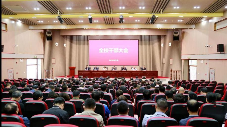 9月13日,學(xué)校在日新大廈四樓學(xué)術(shù)報告廳召開全校干部大會,專題傳達(dá)學(xué)習(xí)習(xí)近平總書記在我省視察、主持召開新時代推動?xùn)|北全面振興座談會、聽取省委省政府工作匯報時的重要講話重要指示精神。黨委書記陳桂芝主持會議并講話。校領(lǐng)導(dǎo)郝文斌、齊宏偉、王剛、張樹軍、李奇楠、陸占權(quán)出席會議,全校副處級以上干部參加會議。