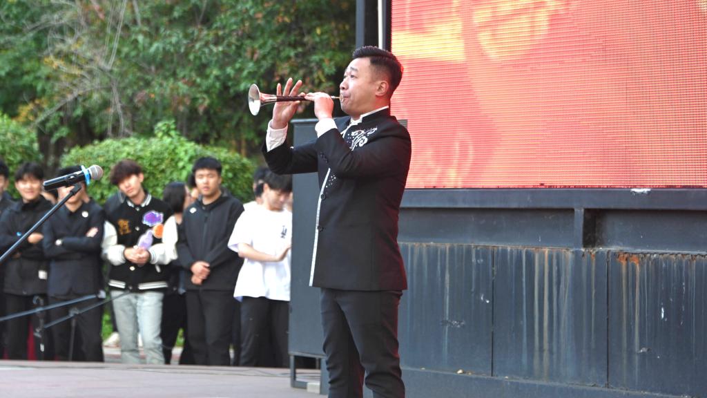 管弦系王超老師表演的嗩吶獨奏《普天同慶》,用歡快愉悅的節奏,表達了人民對幸福生活的贊美之情。