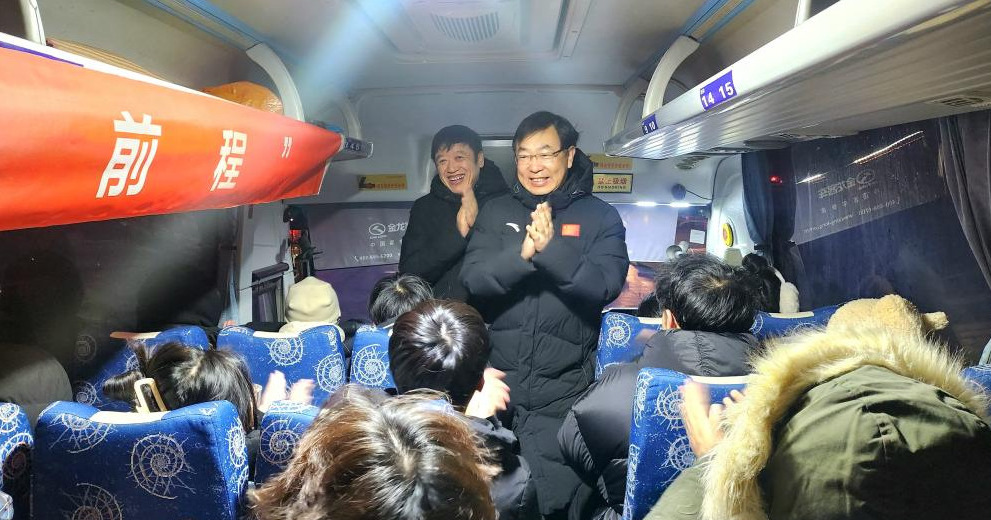 清晨6時30分,全部愛心送考車已在各個校區排列整齊,整裝待發。校長郝文斌、黨委副書記張文治早早來到現場,為考生們送上關懷與祝福。郝文斌與張文治登上送考車輛,與考生親切交流,鼓勵他們保持信心、沉著應考,并表達了希望他們在考試中取得優異成績的美好祝愿。學校的溫暖關懷沖淡了嚴冬的陣陣寒意,讓考生們倍感溫暖和鼓舞。大家一致表示,感謝學校的安排和老師們的鼓勵,必將全力以赴,以最佳狀態迎接考試。