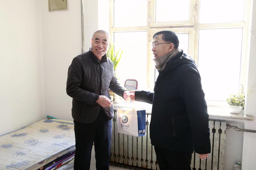 歲月更迭,初心依舊。新歲序開,同赴新程。2月9日,正值甲辰龍年大年三十,在新春佳節(jié)來臨之際,校長、校黨委副書記郝文斌先后來到南校區(qū)門衛(wèi)室、西二區(qū)變電所、校網(wǎng)絡(luò)信息中心值班室、中區(qū)門衛(wèi)室、學(xué)校總值班室、教務(wù)處信息中心、校110指揮中心、鑫三星物業(yè)辦公室、?;锸晨瓶傊蛋嗍?、東區(qū)門衛(wèi)室、德潤大廈等地,看望并慰問了依然值守在校園一線崗位的職工和在校留學(xué)生,為他們送去了慰問品和新春祝福。校黨委副書記張文治、副校長張樹軍及相關(guān)單位負責(zé)人陪同走訪慰問。