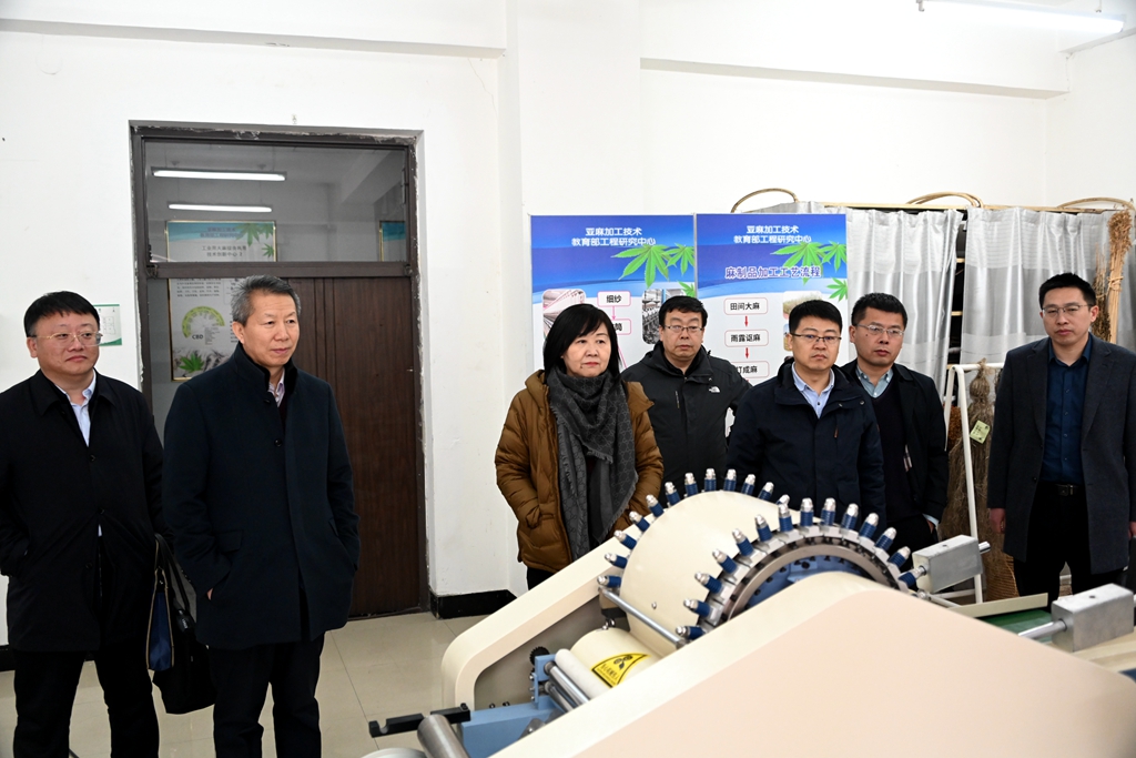 于文秀一行實地考察了國家市場監(jiān)管技術(shù)創(chuàng)新中心(工業(yè)大麻)、省農(nóng)用生物制劑產(chǎn)業(yè)化協(xié)同創(chuàng)新中心、植物性食品加工技術(shù)教育部工程研究中心和寒區(qū)麻及制品教育部工程研究中心等科研創(chuàng)新平臺,認真聽取了相關(guān)負責(zé)人關(guān)于科研創(chuàng)新平臺建設(shè)運行及科研成果轉(zhuǎn)化等方面情況的介紹,深入了解我校在科技創(chuàng)新、成果轉(zhuǎn)化及社會服務(wù)等方面的情況。