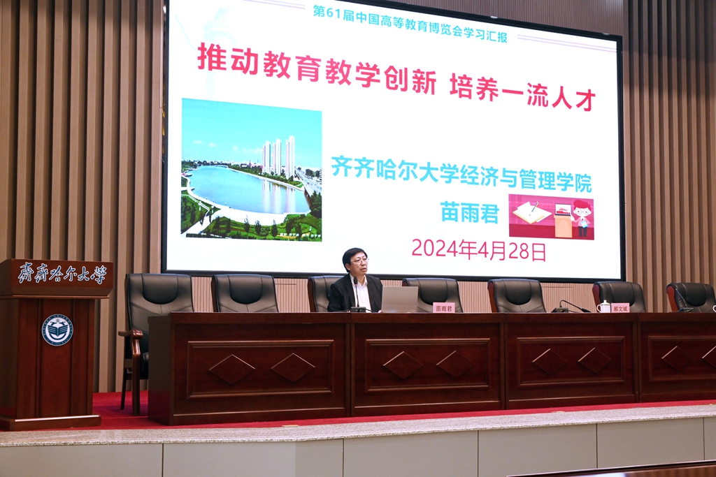 經濟與管理學院副院長苗雨君以《推動教育教學創(chuàng)新培養(yǎng)一流人才》為題,作了關于參加第61屆中國高等教育博覽會參會情況的工作匯報。