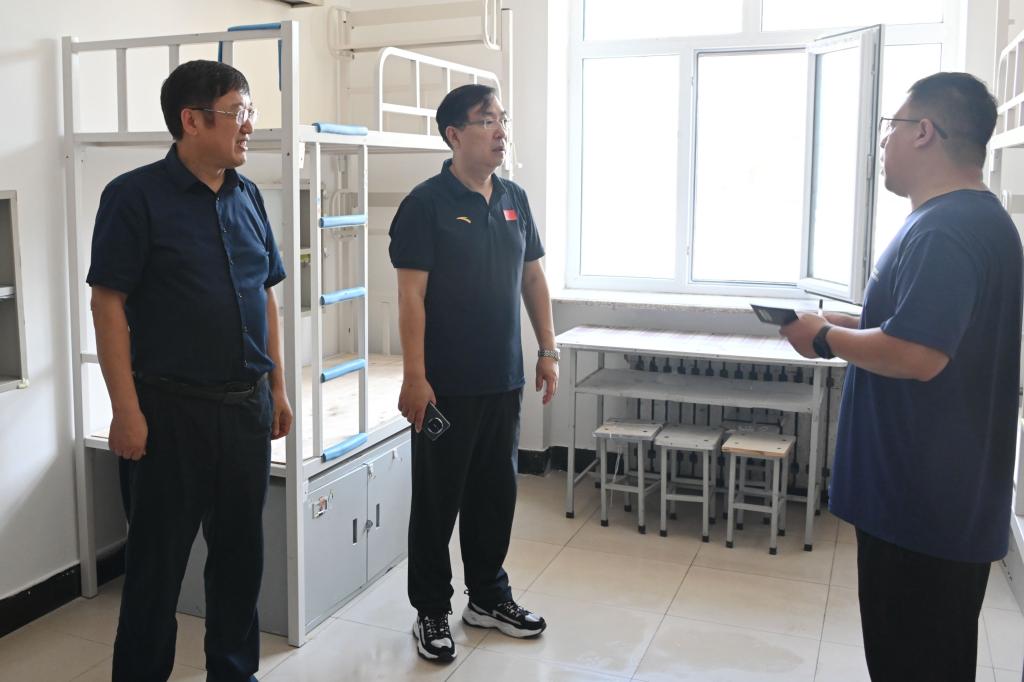 8月15日上午,校長郝文斌在黨委副書記張文治、副校長王剛的陪同下深入學(xué)生公寓檢查指導(dǎo)開學(xué)準(zhǔn)備工作,學(xué)校辦公室、學(xué)生工作部(學(xué)生處)、財務(wù)處、國有資產(chǎn)管理處、審計處、后勤管理處等相關(guān)部門負(fù)責(zé)人參加。