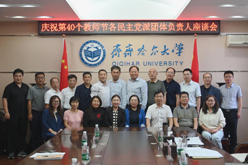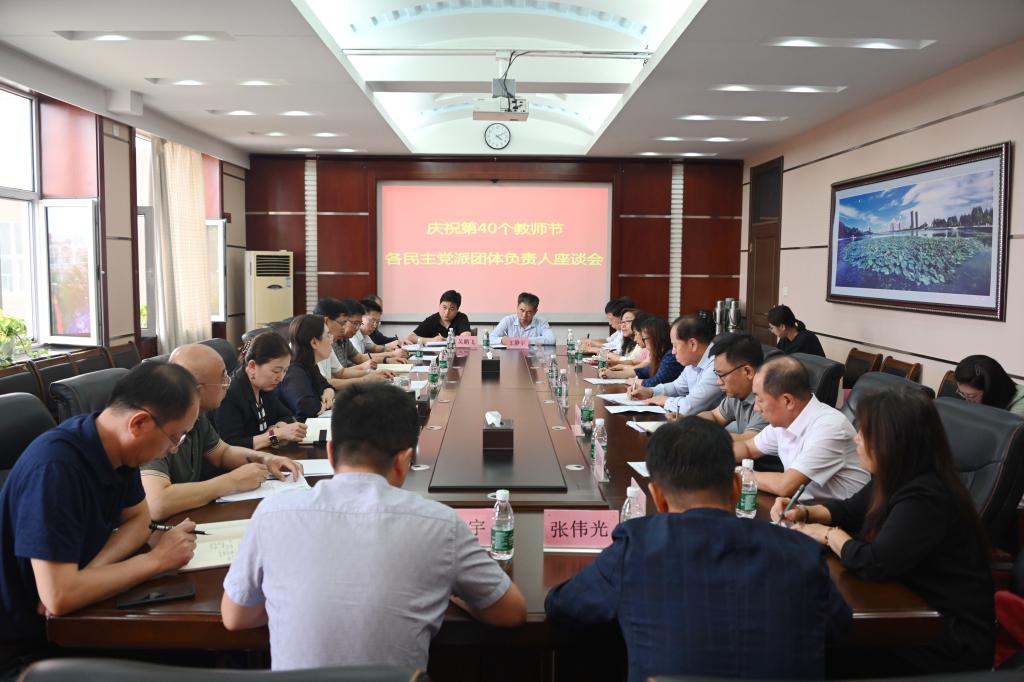在第40個教師節來臨之際,為弘揚教育家精神,努力營造尊師重教濃厚氛圍,進一步凝聚智慧力量,9月9日下午,學校在行政辦公樓504會議室召開慶祝第40個教師節各民主黨派團體負責人座談會。校黨委書記丁宏、黨委副書記、校長郝文斌、黨委副書記齊宏偉出席座談會。各民主黨派團體負責人及黨委組織部、黨委統戰部、人事處(黨委教師工作部)、教務處、科研處等職能部門負責人參加會議,會議由齊宏偉主持。