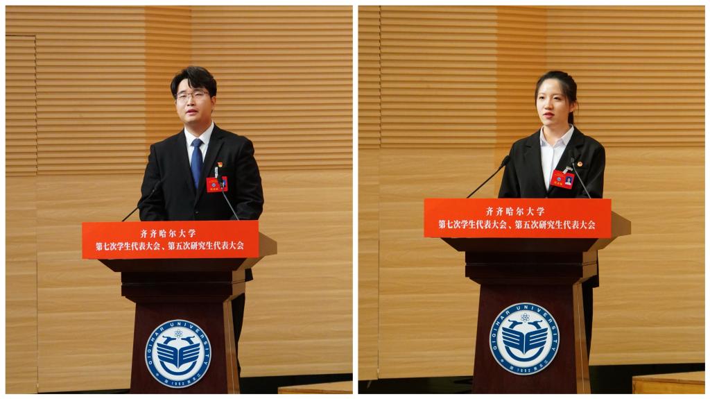 青春盛會(huì)擔(dān)使命,踔厲奮發(fā)正當(dāng)時(shí)。11月13日,我校第七次學(xué)生代表大會(huì)、第五次研究生代表大會(huì)在音樂(lè)廳召開(kāi)。校黨委班子成員丁宏、郝文斌、齊宏偉、張文治、王剛、叢喜權(quán)、馬文輝出席會(huì)議,團(tuán)齊齊哈爾市委書(shū)記孫坤出席會(huì)議并致辭,我校學(xué)生工作指導(dǎo)委員會(huì)相關(guān)職能部門(mén)負(fù)責(zé)同志,各學(xué)院主管學(xué)生工作領(lǐng)導(dǎo)、團(tuán)委書(shū)記,261名本科生代表、68名研究生代表參會(huì)。