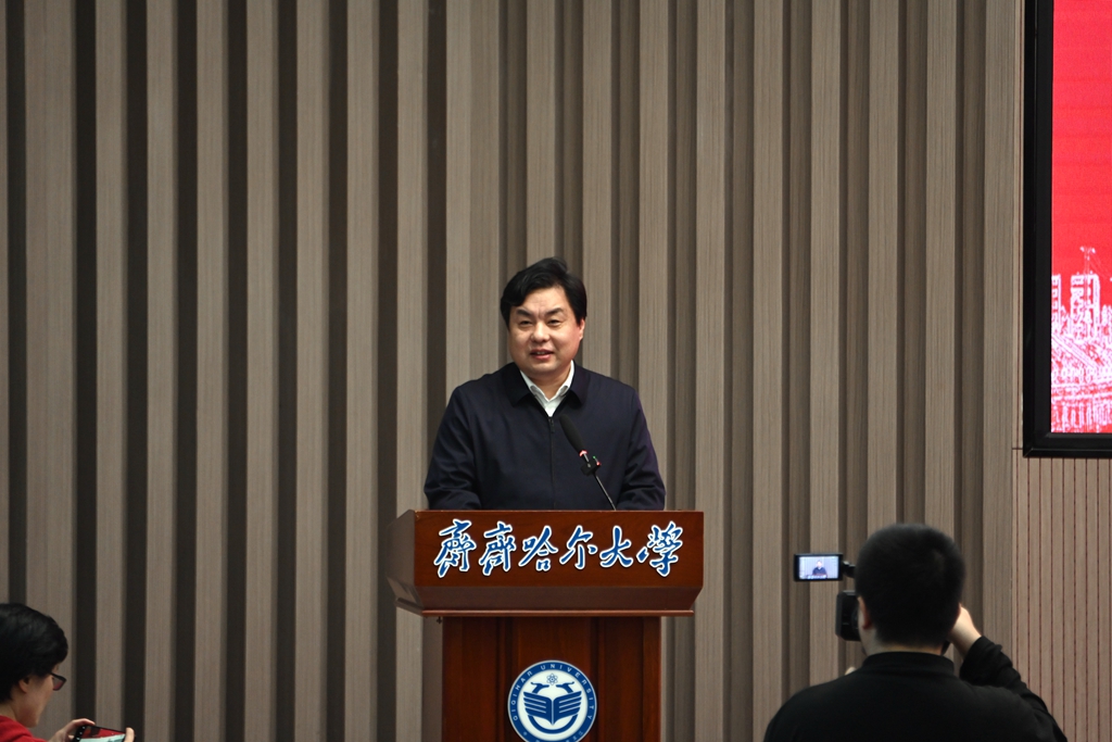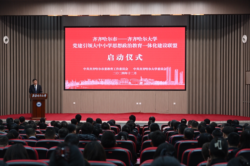 12月10日下午,齊齊哈爾市—齊齊哈爾大學(xué)黨建引領(lǐng)大中小學(xué)思想政治教育一體化建設(shè)聯(lián)盟啟動(dòng)儀式在日新大廈四樓報(bào)告廳舉行。齊齊哈爾市委副書記、市委教育工委書記劉振江,齊齊哈爾市副市長(zhǎng)高淑春,我校黨委書記丁宏,校長(zhǎng)、黨委副書記郝文斌,黨委副書記齊宏偉,黑龍江省民宗委文化宣傳教育處處長(zhǎng)吳鵬,齊齊哈爾市教育局局長(zhǎng)、市委教育工委副書記姜林出席儀式。儀式由校黨委副書記張文治主持。