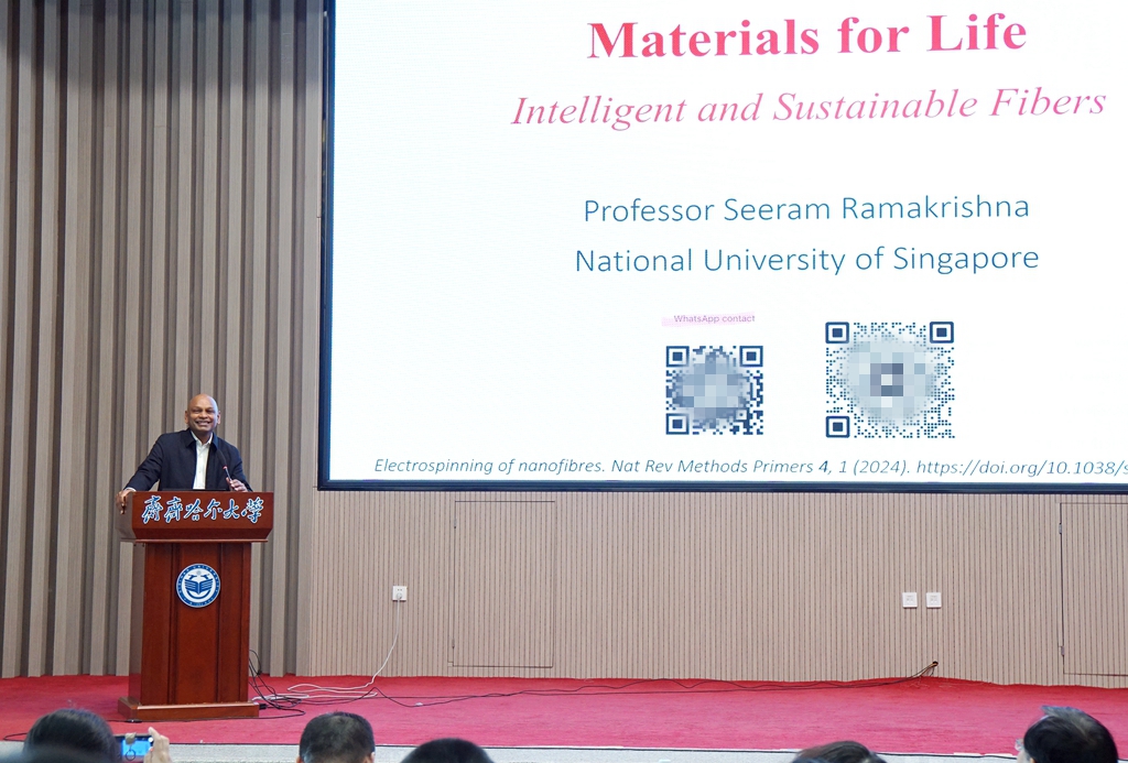 聘任儀式結束后,西拉姆院士以“智能與可持續材料的靜電紡絲技術”為題與師生進行了深入交流。