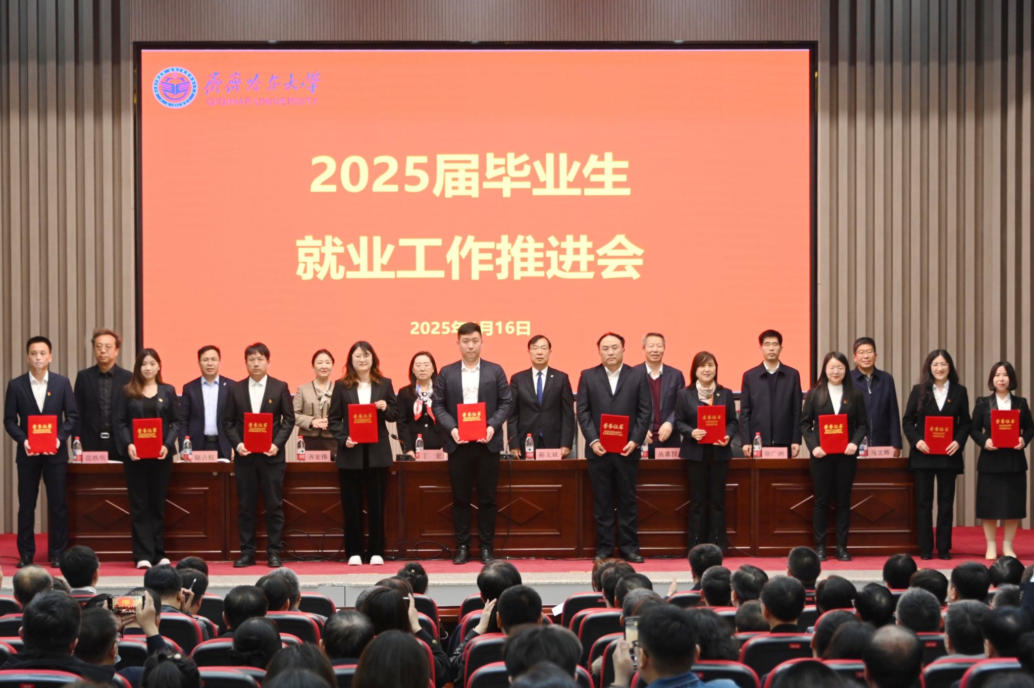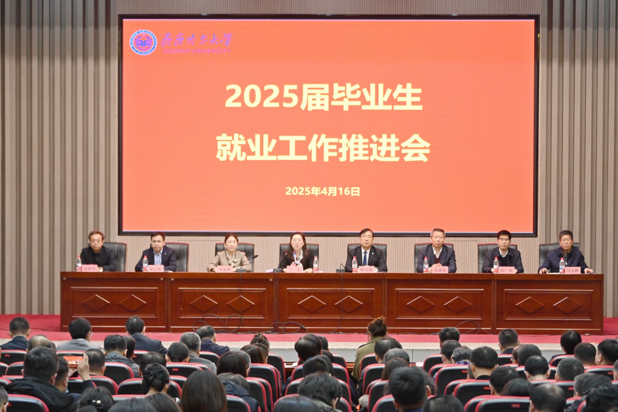 為全面總結(jié)前期就業(yè)工作開展情況及部署下一階段工作任務(wù),全力推進(jìn)畢業(yè)生就業(yè)工作“百日攻堅行動”,4月16日,我校在日新大廈四樓報告廳召開2025屆畢業(yè)生就業(yè)工作推進(jìn)會議。會議由校長、黨委副書記郝文斌主持,黨委副書記齊宏偉宣讀了2024屆畢業(yè)生就業(yè)獎勵文件,黨委書記丁宏在會上作講話。學(xué)校領(lǐng)導(dǎo)班子成員、就業(yè)工作專班、相關(guān)職能部門負(fù)責(zé)同志、學(xué)院班子成員、學(xué)科、專業(yè)帶頭人、2025屆及2026屆畢業(yè)生輔導(dǎo)員參加會議。