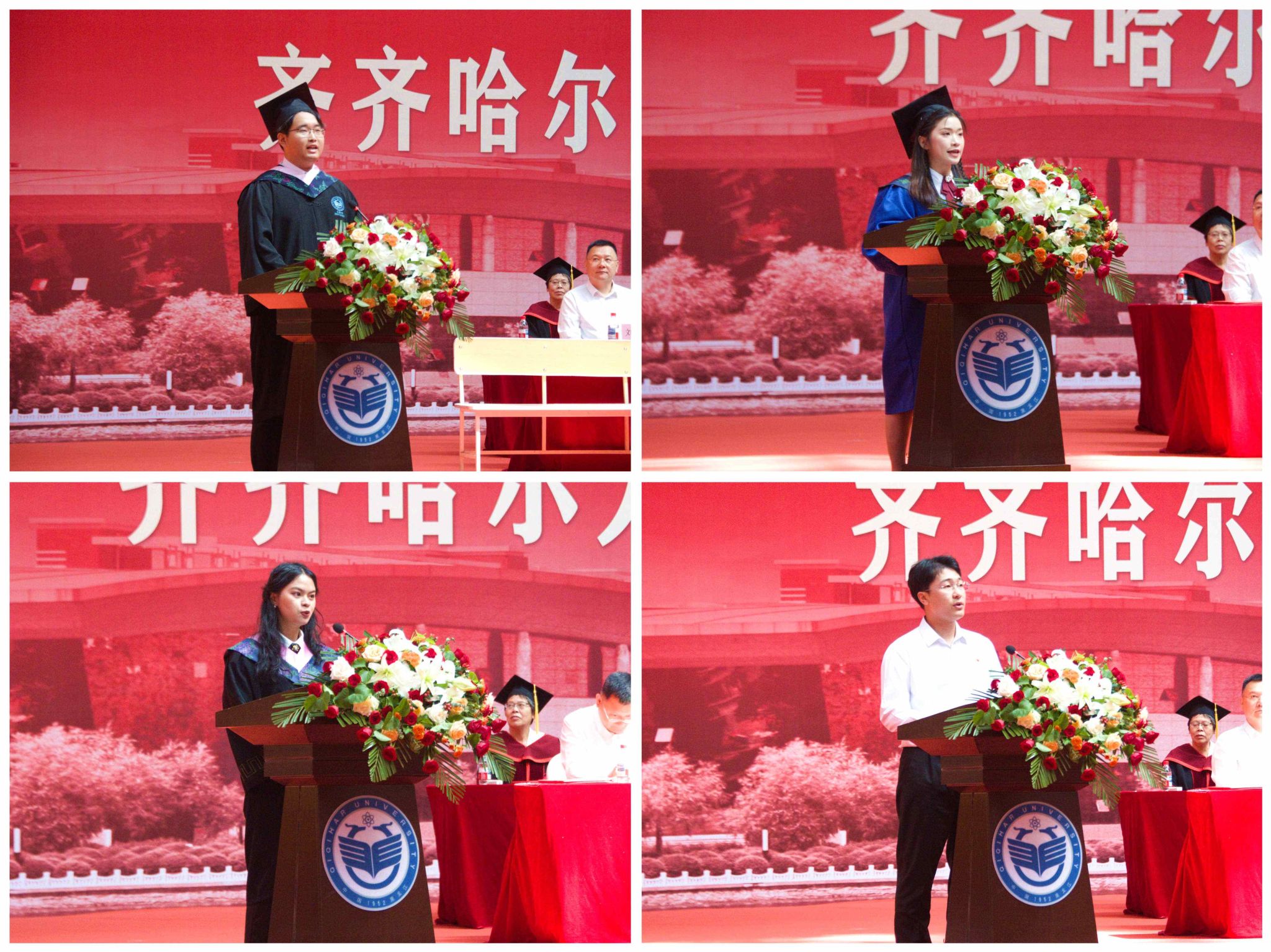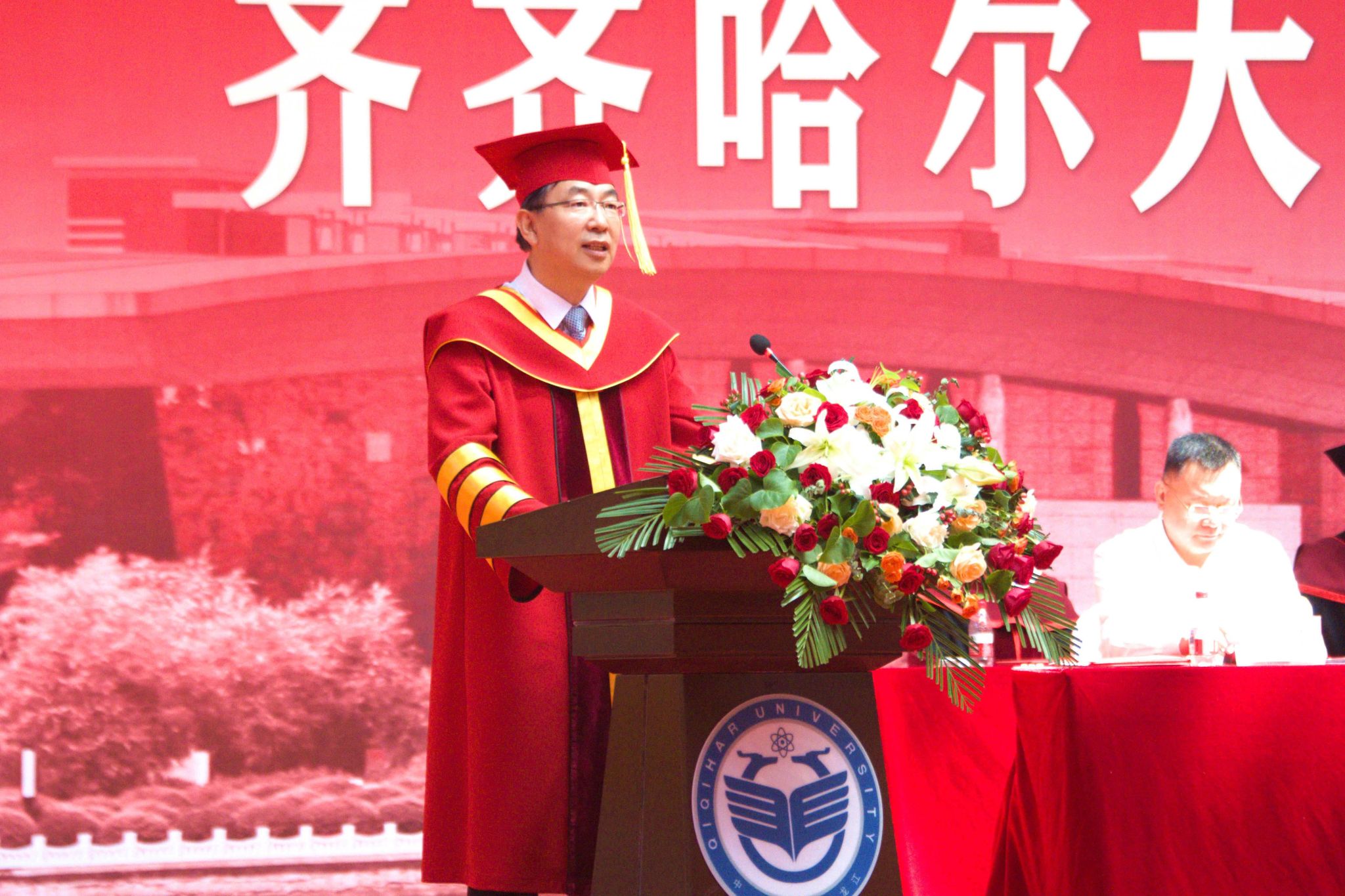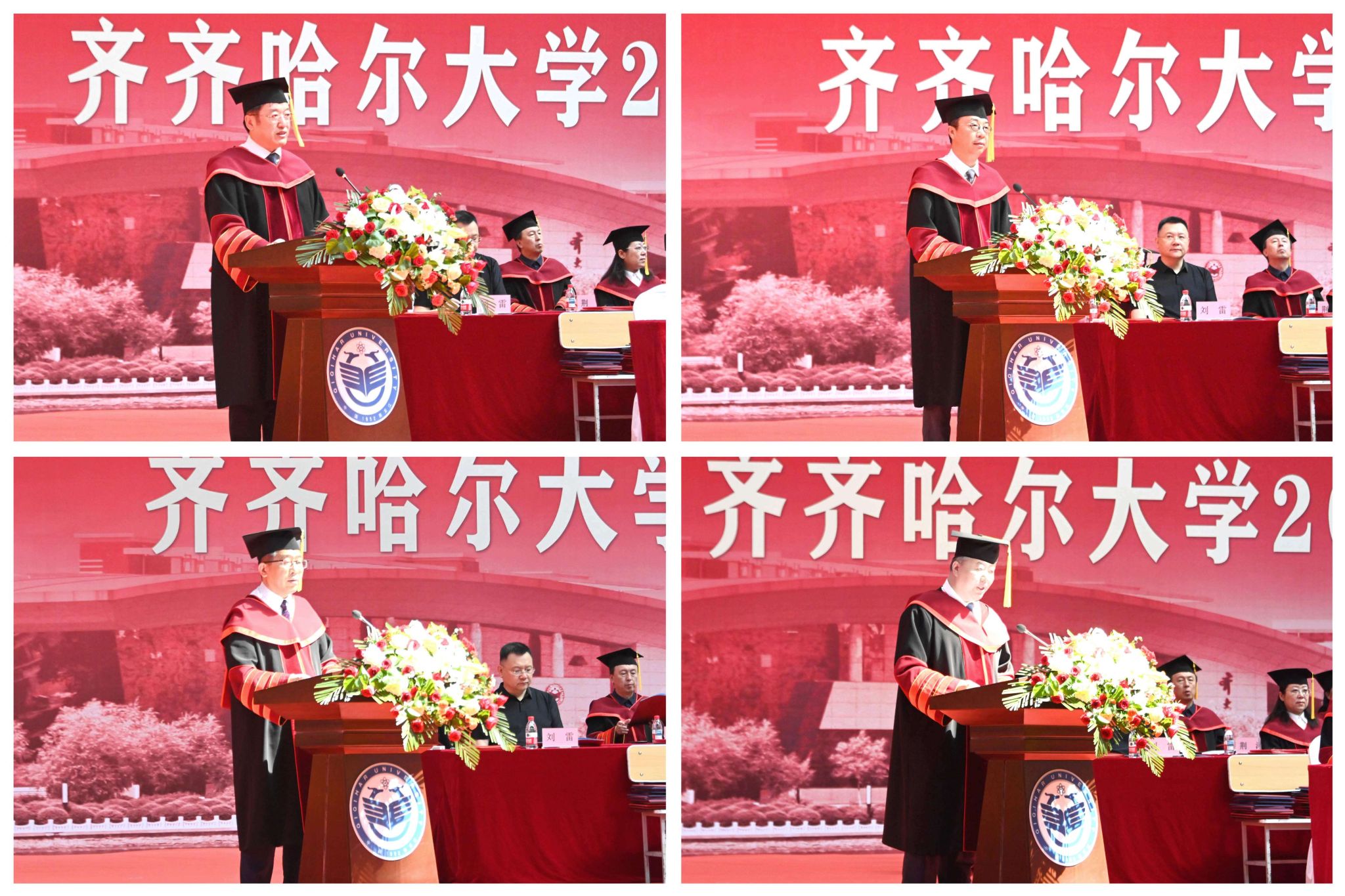 十三屆全國人大代表、齊齊哈爾大學-黑龍江省果蔬雜糧飲品研發(fā)中心主任郭成宇教授代表全體教師,為同學們加油鼓勁、送上祝福。優(yōu)秀校友代表、冷網(wǎng)供應(yīng)鏈(山東)有限公司董事長、山東省黑龍江商會監(jiān)事長、齊齊哈爾大學濟南校友會會長、我校95屆輕化系皮革工程專業(yè)畢業(yè)生劉雷與學弟學妹們分享了畢業(yè)30年來參加工作、個人創(chuàng)業(yè)的經(jīng)歷和感悟。