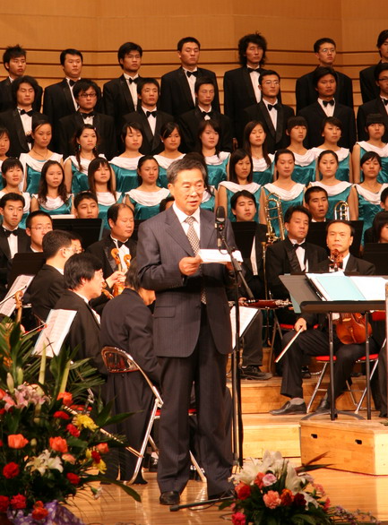 音樂會上副校長姜守訓(xùn)發(fā)表了熱情洋溢的講話。他首先向到會的評估專家及2007級新同學(xué)致以中秋佳節(jié)的祝福,同時,對考入我校的2007級新生表示衷心的祝賀和熱烈的歡迎,對他們在大學(xué)期間的學(xué)習(xí)、工作和生活提出了殷切的希望。他詳細介紹了交響音樂、我校交響樂團的基本情況及其取得的突出成就。他希望2007級新生秉承學(xué)校“養(yǎng)正毓德,精存自生”的校訓(xùn),努力完善知識結(jié)構(gòu)、塑造完美人格,腳踏實地、銳意進取,用青春、智慧和激情演繹更加精彩的大學(xué)人生、唱響一曲無愧于時代、無愧于人民的青春之歌!