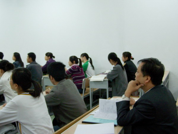 下課后,在課堂內、教室門口、電梯門前,章躍教授和王愛紅進行了認真交流,充分肯定了王老師熟練的外語水平和寬厚的專業(yè)知識。王愛紅虛心傾聽專家意見,誠摯地接受專家的指導,爭取使自己的雙語教學水平有一個更快的提升。