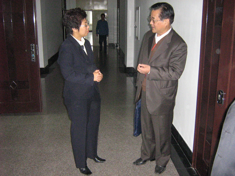 下課后,易佑民教授與樊紅云老師進行交流,對樊紅云老師的授課給予了肯定。