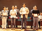 下午4:30分,慶祝大會在莊嚴的國歌聲中拉開序幕。校黨委副書記史鐵成宣布了一年來我校教師的獲獎情況;校黨委副書記王鳳琴宣讀了黑龍江省委省政府關于命名精神文明建設先進集體的決定;副校長鄧啟剛宣布了我校一年來科研成果獲獎情況;校工會主席呂曉輝宣讀了《關于命名表彰“三育人”標兵 先進個人和先進集體的決定》。宣讀完畢之后,出席大會的校領導為獲獎集體和個人頒發(fā)了獲獎證書。