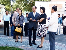 敬一丹女士受到我校領導及現場師生的熱烈歡迎,敬一丹女士熱情地和校領導一一握手并對我校的熱情迎接表示感謝。當敬一丹女士注意到中區門前新落成的鐫刻有我校校訓的巨石時,唱江華校長詳細地為其做了解說。我校領導和敬一丹女士還在巨石前合影留念。
