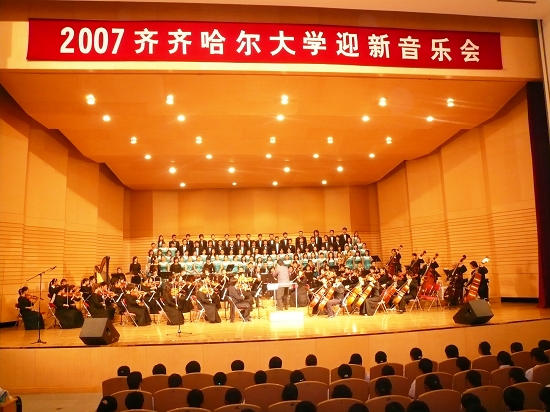 發布日期:2007-09-22 點擊量:9月18日晚,齊齊哈爾大學音樂廳內管弦齊奏,掌聲熱烈。在碩果飄香、滿載收獲的金秋九月,迎新音樂會第一場演出隆重拉開帷幕。