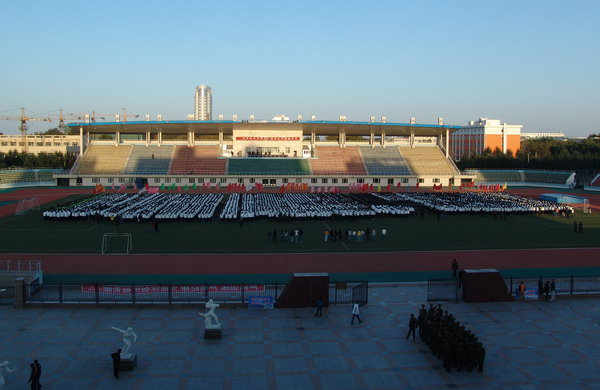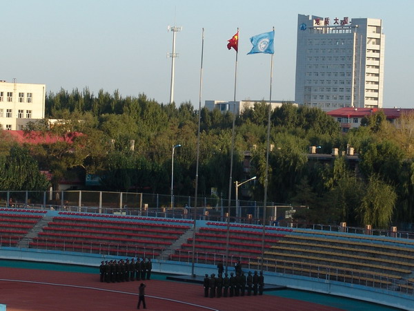 9月24日6:20,在我校西區(qū)體育場(chǎng)舉行了新生軍訓(xùn)項(xiàng)目之一的愛國(guó)主義教育活動(dòng)——升國(guó)旗儀式。5800余名07級(jí)新生參加了升旗儀式。