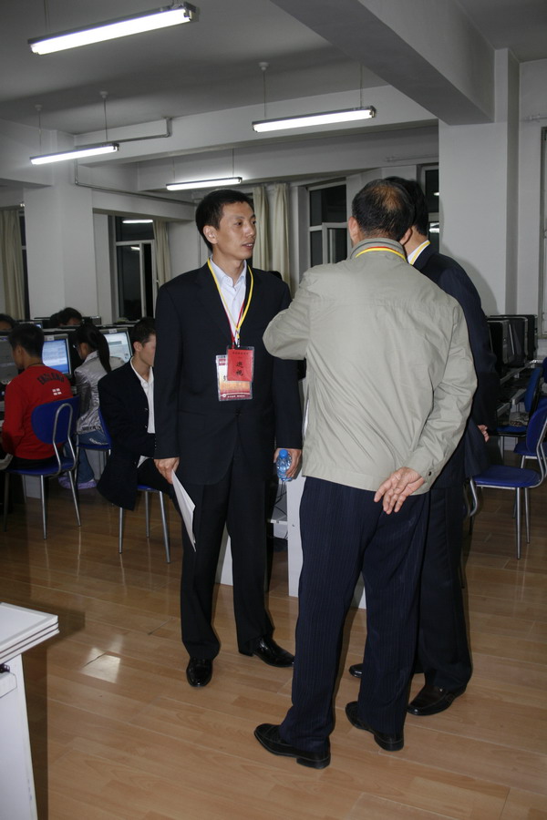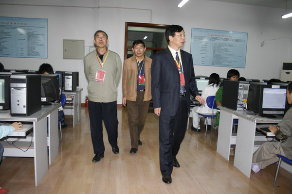 19時30分,評估專家王立新教授、邢永昌教授,專家組秘書姚浪到計算中心測試現場組織了學生計算機技能測試。