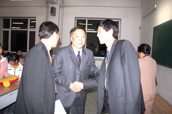 9月24日晚20時30分,專家組成員仇鴻偉教授與章躍教授在25教120教室進行了學生外語基本技能測試。
