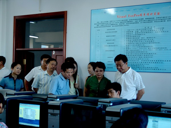 省政府、省教育廳領導一行深入到計算中心機房觀看了我校網絡課程教學演示。