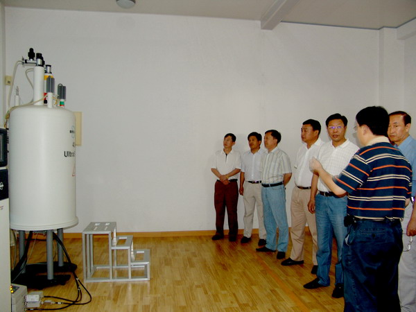 匯報會結束后,省政府、省教育廳領導一行在校領導、市政府有關部門負責人陪同下視察了化學與化學工程學院400兆超導核磁共振、分析測試中心等實驗室等。