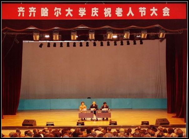 10月30日下午,我校中區文化宮里全體離退休人員共聚一堂,隆重舉行“齊齊哈爾大學慶祝老人節大會”,校長唱江華、副校長張忠恒出席了慶祝大會,與全體離退休人員一起共慶“老人節”,離退休工作處副處長韓樹勤主持了慶祝大會。