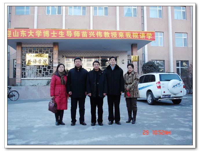 2006年12月29日,山東大學外國語學院副院長、博士生導師、教育部人文社會科學重點研究基地“北京外國語大學中國外語教育研究中心”兼職研究員苗興偉教授應我校外國語學院的邀請,來我校講學。 我校副校長鄭喜群與苗興偉教授進行了親切地交流,并代表學校對苗興偉應邀來我校講學表示了誠摯地謝意。