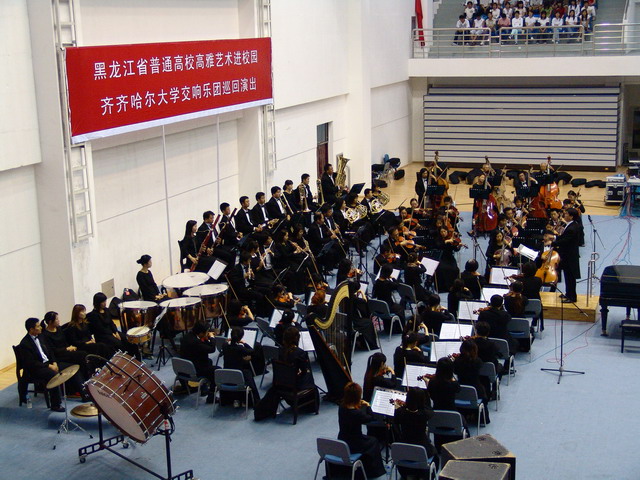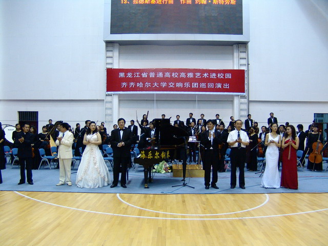 6月25日晚,我校交響樂團來到了此次巡回演出的最后一站--黑龍江八一農(nóng)墾大學(xué),在八一農(nóng)墾大學(xué)的體育館為4000多名師生在獻上一場音樂盛宴。黑龍江八一農(nóng)墾大學(xué)校黨委書記翟瑞常、副書記南都國,副校長宋來田、趙福春,工會主席王毅等校領(lǐng)導(dǎo)出席了音樂會。