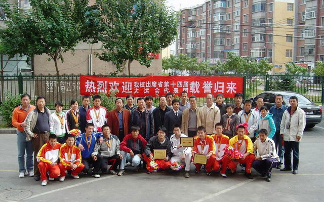 學(xué)校舉行了熱烈的歡迎會,慰問我校代表團(tuán)的全體大學(xué)生運動員及教練員,校長唱江華、副校長曲偉建、姜守訓(xùn)、鄭喜群等校領(lǐng)導(dǎo)向取得喜人成績的代表團(tuán)成員表示熱烈地祝賀,向運動健兒們表示親切的問候,并希望他們珍視榮譽,再攀高峰,不斷開創(chuàng)我校體育運動競技、體育教學(xué)和群眾性運動健身普及工作新局面。體育學(xué)院領(lǐng)導(dǎo)及教練、大學(xué)生運動員代表表示,要發(fā)揚成績,再接再厲,努力為學(xué)校再奪新桂冠,再譜新篇章。
