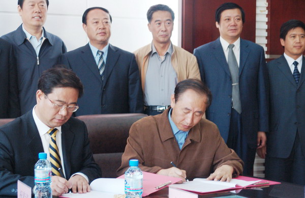 在兩校校際合作簽約儀式上,我校校長唱江華教授與燕山大學校長劉宏民教授分別代表雙方在兩校校際合作與人才培養協議文本上簽字,我市副市長孫綱、馬立群與我校副校長曲偉建、姜守訓、鄭喜群、鄧啟剛等陪同考察并出席校際合作簽約儀式。