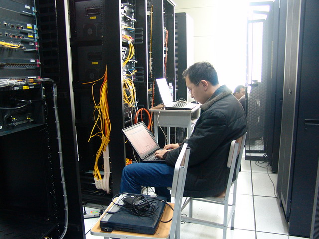 校園網(wǎng)改造、升級工程于7月20日開始啟動。負責這項工程的網(wǎng)絡信息中心的全體同志克服天氣炎熱,任務重,人員較少等困難,整個暑假一天也沒休息。在學校有關部門的大力支持下,相繼完成了網(wǎng)絡中心機房的改造、網(wǎng)絡運行部的搬遷、機房UPS電源室的改造和電源安裝連接,以及中心機房各種應用服務器安裝到新購制的立式機柜上等工作。目前大部分設備已經(jīng)到位,改造升級工作正在進行。