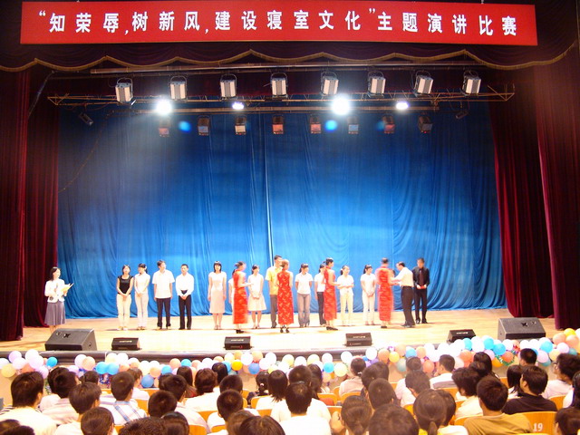 6月3日下午14時,來自我校14個學院的22名選手在中區文化宮為千余名觀眾帶來了一場激情洋溢的演講比賽。 本次題為“知榮辱,樹新風,建設寢室文化”的演講比賽是學生工作處為了深入貫徹我校黨委下發的《齊齊哈爾大學學生寢室文化建設方案》精神,大力開展社會主義榮辱觀教育,全面推進“寢室文化建設加強月”活動,豐富學生文化生活,不斷提高寢室文化建設的層次和水平而舉辦的。校黨委副書記王鳳琴、副校長姜守訓、學生工作部(處)部長王剛及各學院主管學生工作的副書記、副院長作為嘉賓光臨了比賽現場。本次比賽邀請了黨校辦、教務處、新聞中心、學生指導中心和校團委七位老師擔任評委。